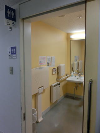 車いすの方やオストメイトの方がご利用しやすくなっています。一階入り口付近のトイレは、入室時の音声案内もあります。