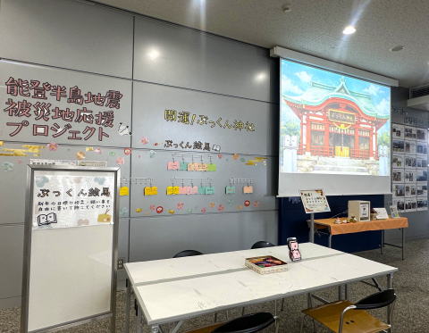 会場内に設置した募金箱へのご協力は、能登半島地震で被災した図書館への支援につながります。