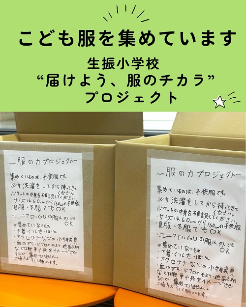 【こども服を集めています】 ~生振小学校 "届けよう、服のチカラ"プロジェクト~
